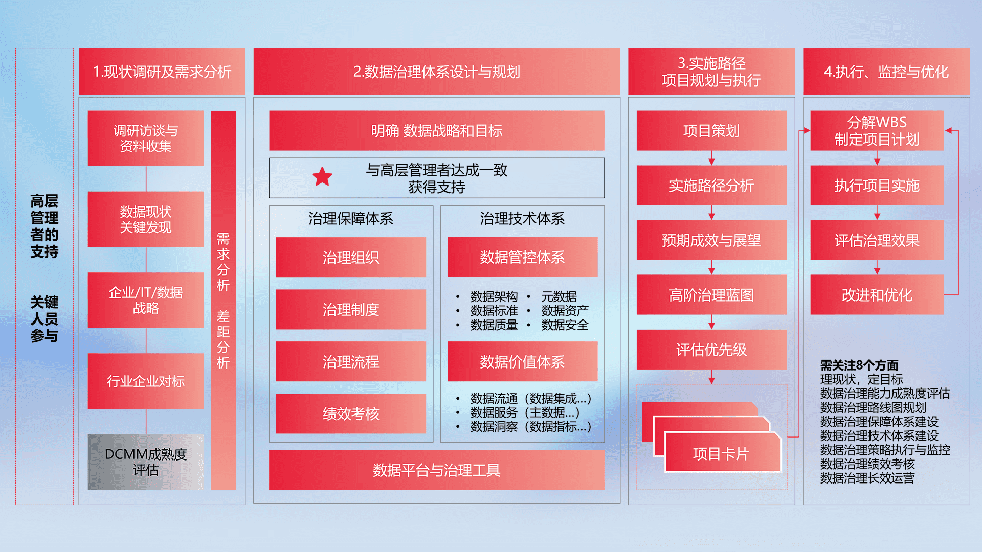 制定并执行统一的数据标准,,,,规范数据定义和格式,,,,消除冗余和不一致性,,,,实现跨部门和跨系统的数据一致性,,为企业提供标准化的数据基础。。。。